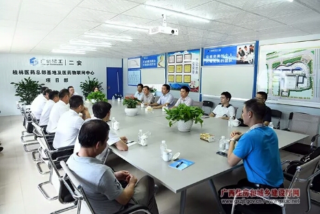 參會(huì)領(lǐng)導(dǎo)與施工方廣西建工二安公司舉行座談